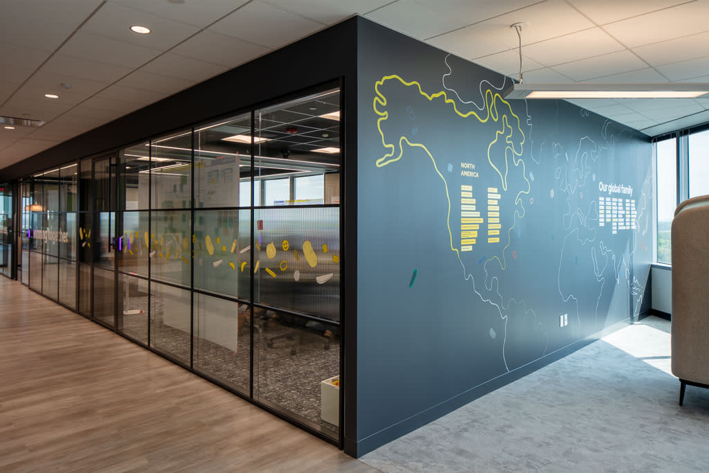 Dimensional Lettering over Dreamscape Wallcovering with Spot Gloss